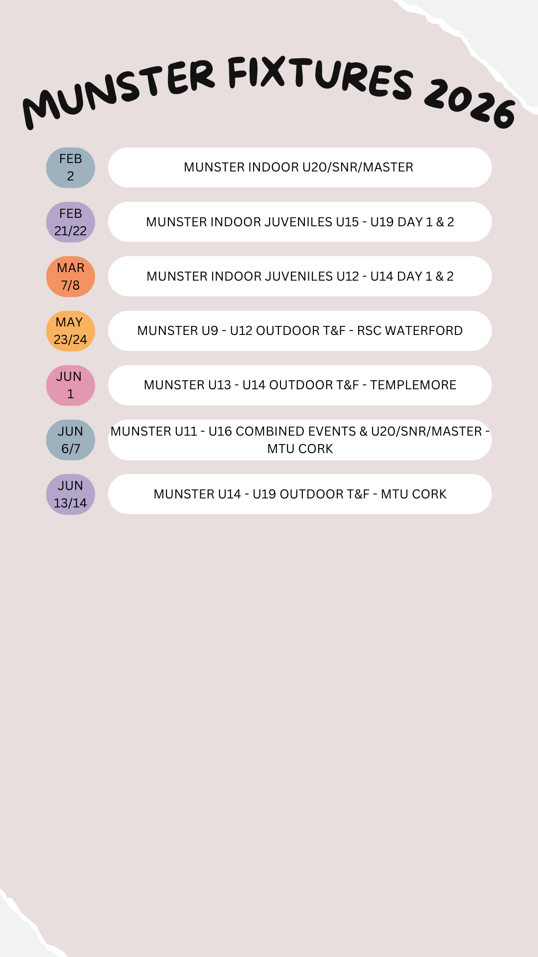 Munster Indoors Juveniles U15-U19 Day 1 |